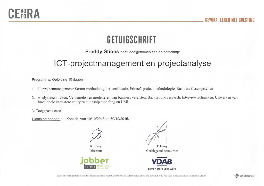 I followed the ICT Project Management and Project Analysis course at Cevora with a very pragmatic goal: to better understand how software projects should be structured, analysed, communicated, and controlled in real technical environments.