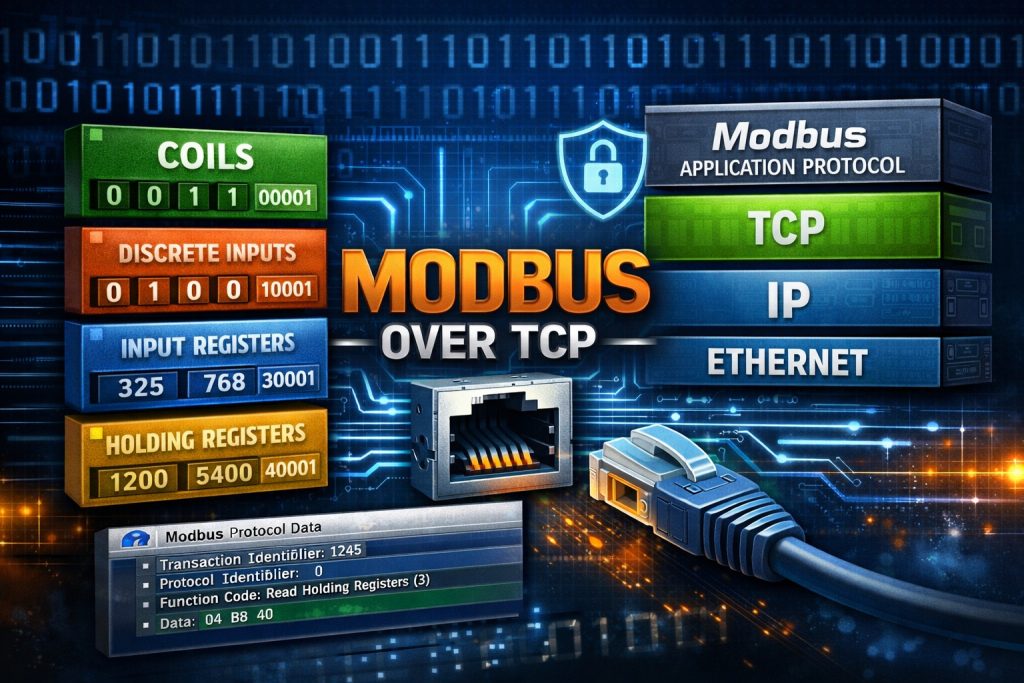 Modbus over TCP is one of the simplest industrial communication protocols still in heavy use today. It runs on Ethernet, uses TCP port 502, and follows a strict request response model.